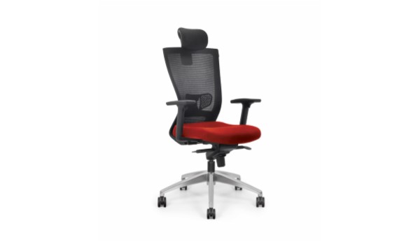 Upholstery: Back rest: mesh ( black ) , seat: fabric ( black and red), leatherite (black)